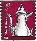 A cafeteira antiga de prata, fabricada por volta de 1786, é o destaque do selo americano de 2005.